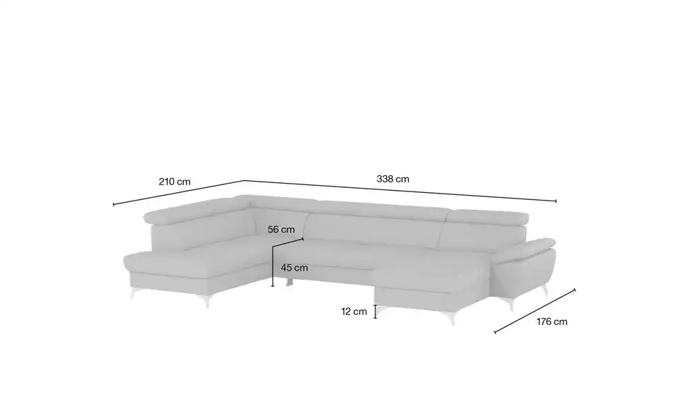 Die Wohnlandschaft Apollo sorgt für ein hohes Maß an Bequemlichkeit in Deinen vier Wänden. Mit der Armteilverstellung und der Kopfteilverstellung lässt der Markenartikel von uno in puncto Komfort keine Wünsche offen. Er verfügt über einen echt bespannten Rücken, damit er auch mittig im Raum aufgestellt werden kann, und lädt auch dank der bequemen Polsterung aus Kaltschaum zum Relaxen ein. Das Modell Apollo besticht mit einem Rahmen aus Metall. Die Couch hat einen integrierten Bettkasten und nimmt 338 x 96 x 210 cm ein. Dieses Sofa verschafft jedem Zuhause die außergewöhnlichen Wohlfühlmomente.Lieferung & Versand