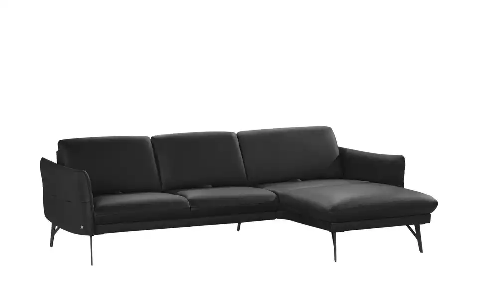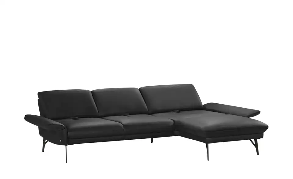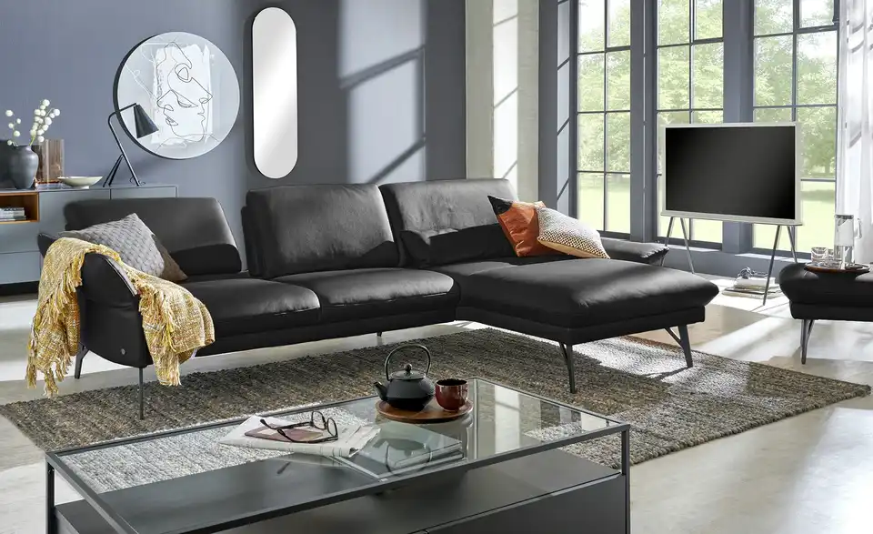 Loftig-modern und mit einem Hauch Industrial-Note präsentiert sich dieses Ecksofa. Es ist komplett mit Echtleder bezogen und wird durch attraktive, dunkle Metall-Winkelfüße getragen. Passe die Sitztiefe ganz nach Deinen Wünschen an und klappe die beiden Armlehnen je nach Bedarf hoch oder runter. Die breite Ottomane lädt zum Ausstrecken ein und macht jeden Filmeabend gleich gemütlicher. Unser Tipp: Mit der Kopfstütze 1928 lässt sich jeder Sitzbereich individuell anpassen. Vielfältigste Verstellmöglichkeiten bei kompromissloser Qualität: Die Multifunktionspolster von himolla werden liebevoll im bayrischen Taufkirchen gefertigt. Hier entstehen individuelle Polster, die Deine Erwartungen an Komfort, Design und Funktion bedingungslos erfüllen.Lieferung & Versand