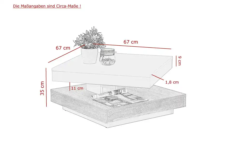 - Maße Tisch (LxB)67x67