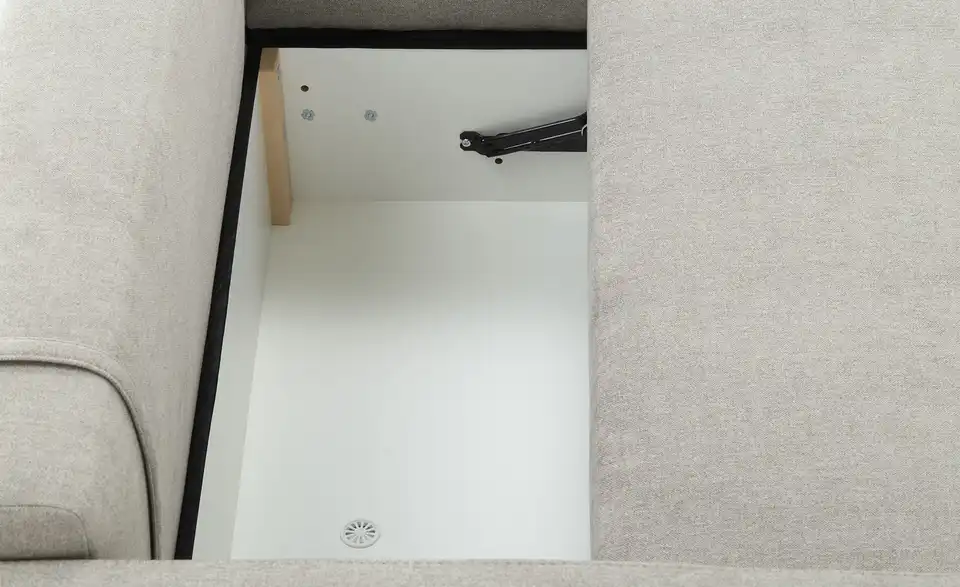 - Geräumiger, belüfteter Bettkasten