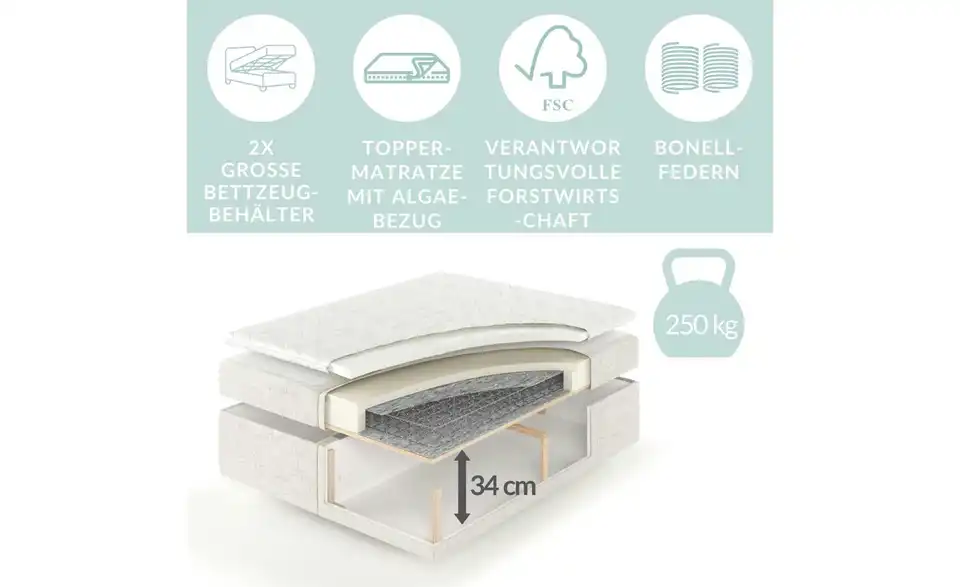 - Mehr zu Ausstattung / FunktionBonellmatratzeStauraumVisco-Schaum-Topper