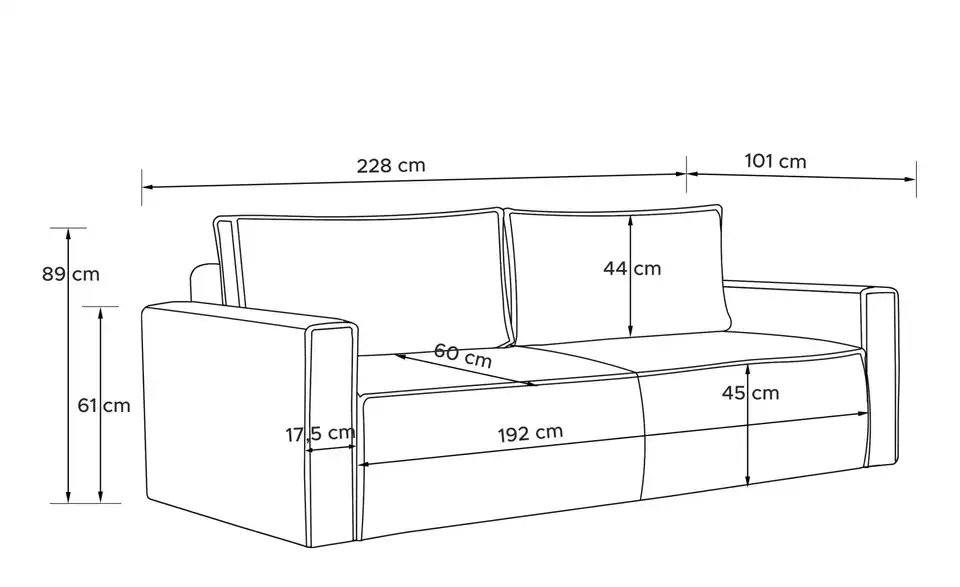 - Sitzbreite192 cm
