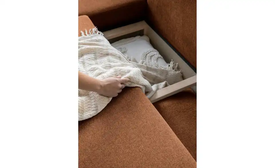- Lieferumfang / mitgeliefertes ZubehörEcksofa mit 5 Rückenkissen, 2 Dekokissen