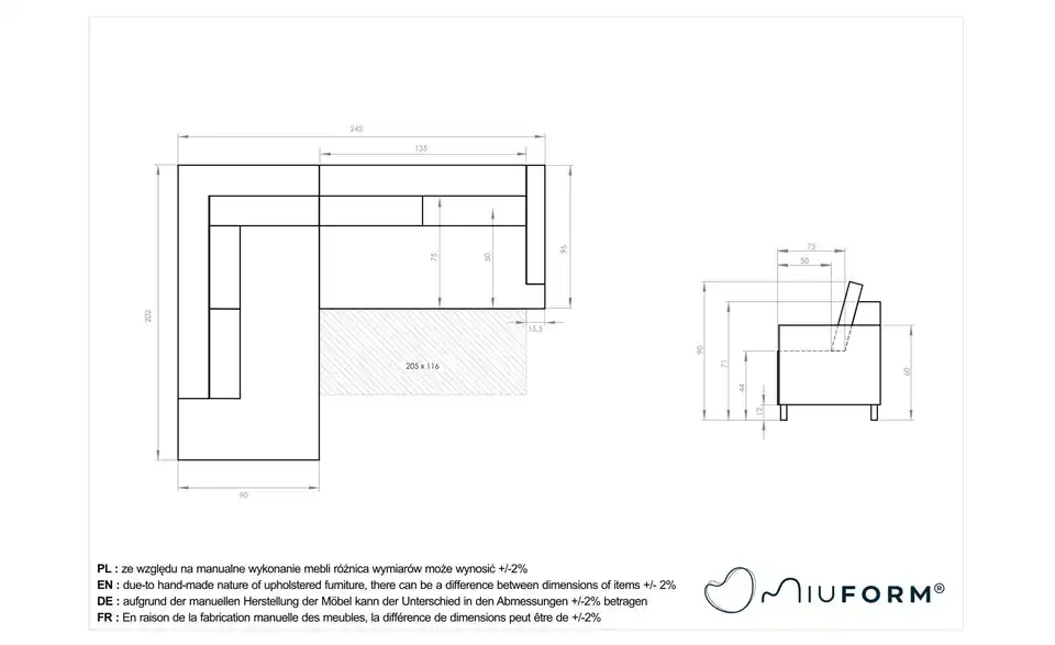 - Gesamtbreite242 cm