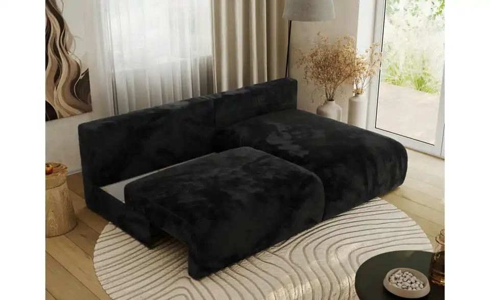 - AusführungEcksofa Schwarz Plüsch