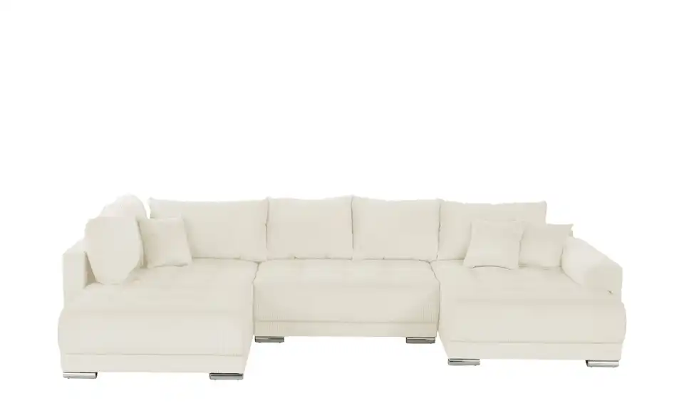 Richtig viel Platz für Freunde und Familie: Diese Wohnlandschaft überzeugt mit zwei einladenden Ottomanen und einer praktischen Schlaffunktion. Sitzen Sie zur Familienfeier bequem zusammen oder genießen Sie in großer Runde einen Filmeabend mit Freunden. Platz gibt es hier genug. Und wenn es doch etwas länger wird, können Sie mit nur wenigen Griffen den Mittelteil umklappen und zu einer Liegefläche umfunktionieren. Dann finden zwei Übernachtungsgäste problemlos Platz. Das dazugehörige Bettzeug lässt sich außerdem im geräumigen Bettkasten unter der Sitzfläche verstauen.Lieferung & Versand