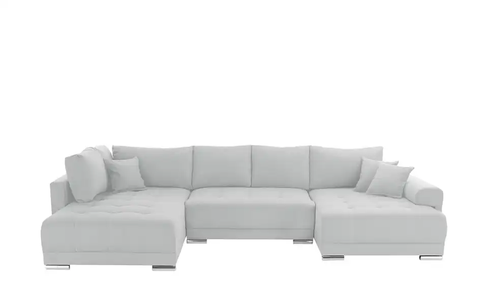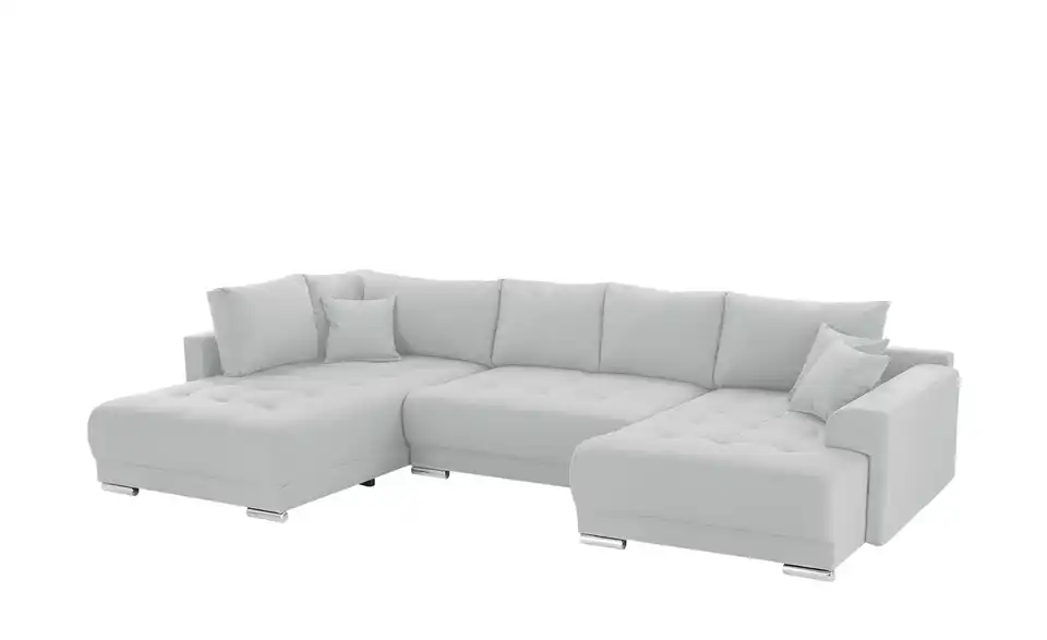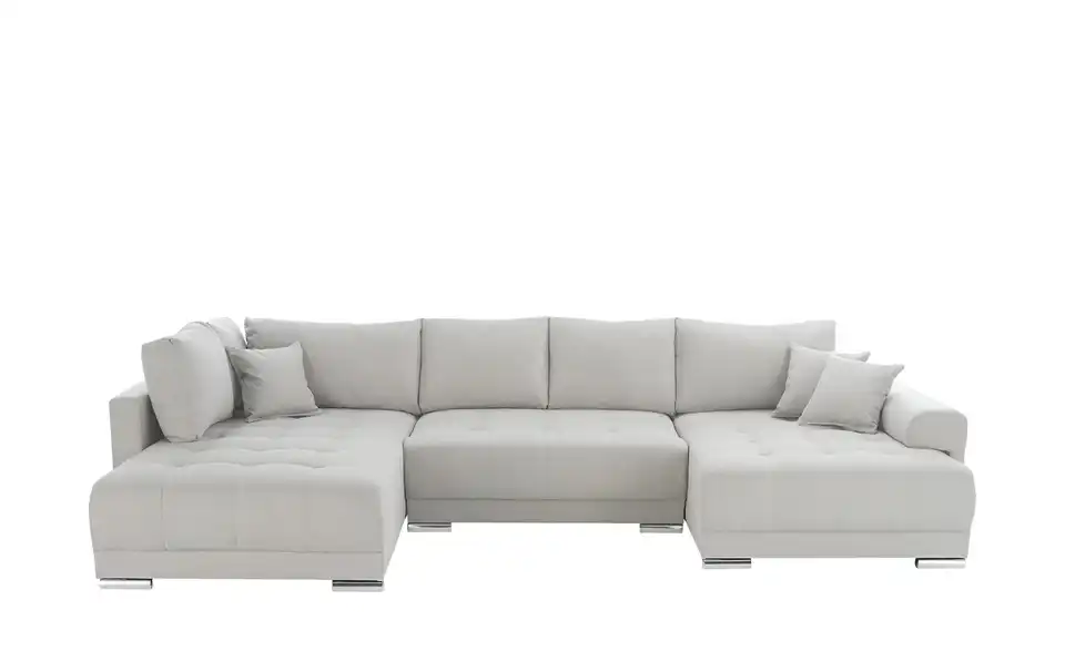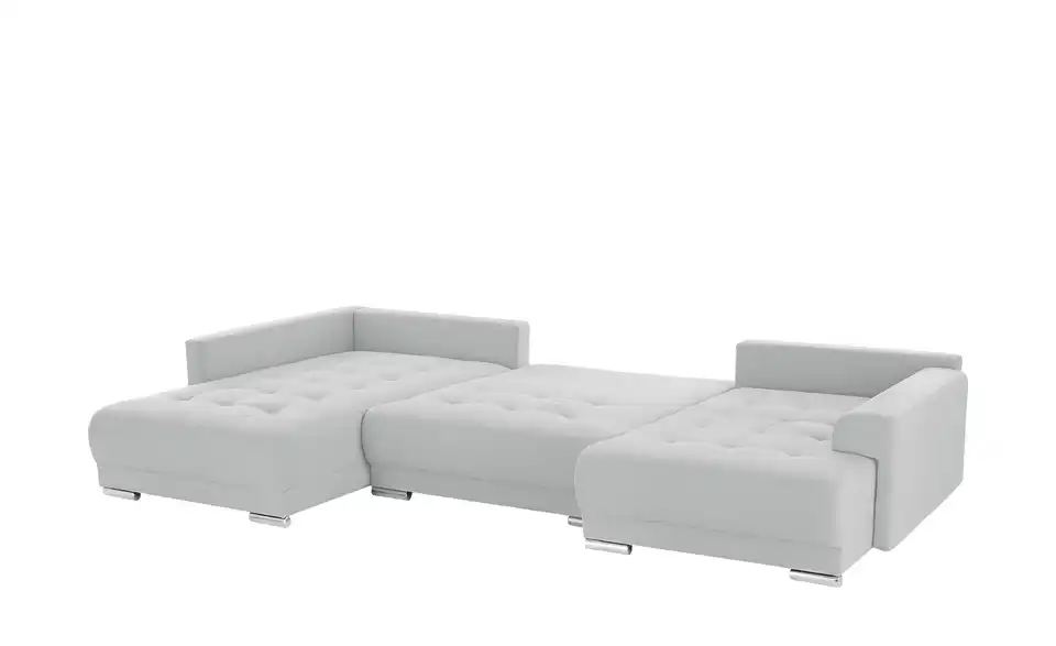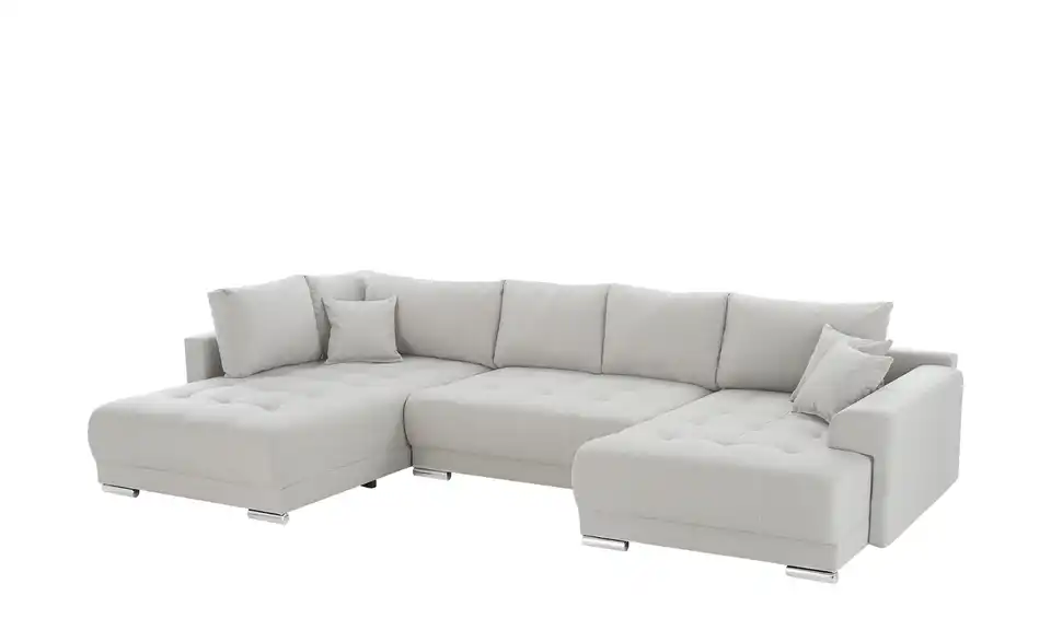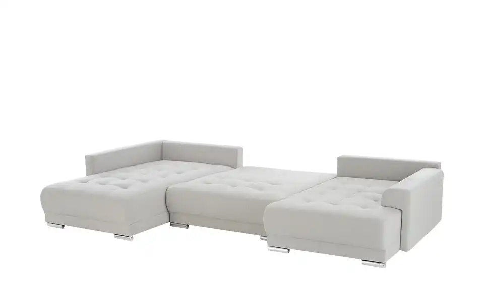Richtig viel Platz für Freunde und Familie: Diese Wohnlandschaft überzeugt mit zwei einladenden Ottomanen und einer praktischen Schlaffunktion. Sitzen Sie zur Familienfeier bequem zusammen oder genießen Sie in großer Runde einen Filmeabend mit Freunden. Platz gibt es hier genug. Und wenn es doch etwas länger wird, können Sie mit nur wenigen Griffen den Mittelteil umklappen und zu einer Liegefläche umfunktionieren. Dann finden zwei Übernachtungsgäste problemlos Platz. Das dazugehörige Bettzeug lässt sich außerdem im geräumigen Bettkasten unter der Sitzfläche verstauen.Lieferung & Versand