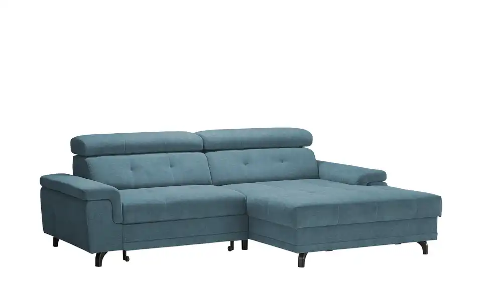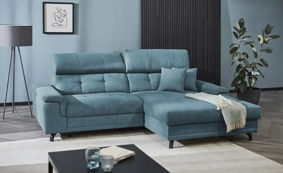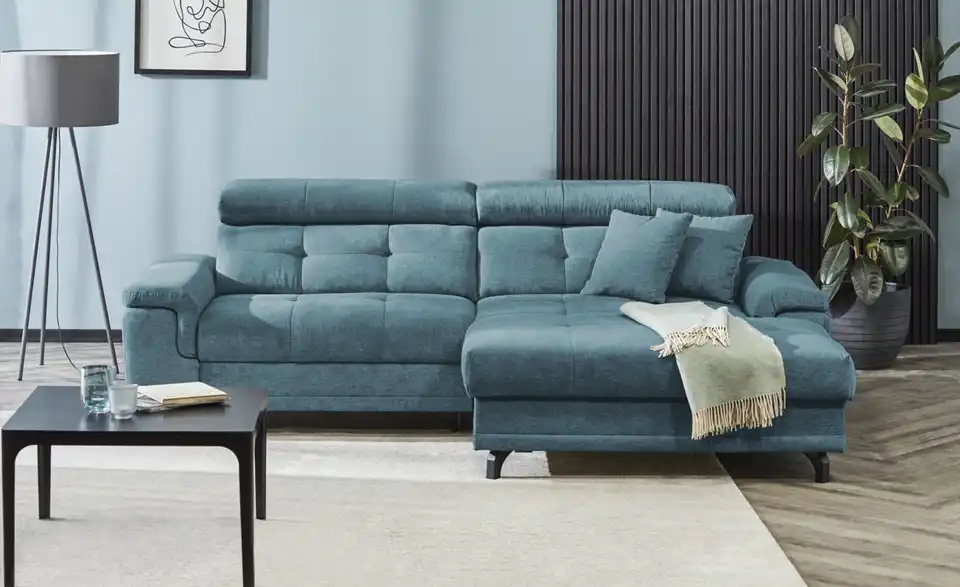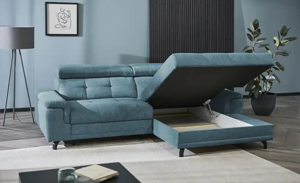 Dieses Ecksofa ist ein richtiges Highlight und besticht zudem durch außergewöhnlichen Sitzkomfort. Das Modell Frieda ist dank der Kopfteilverstellung eine absolute Oase der Entspannung, lädt auch aufgrund der Polsterung aus Kaltschaum zum Relaxen ein und ist mit einem echt bezogenen Rücken ausgestattet, damit es auch mitten im Raum platziert werden kann. Das Gestell besteht aus Metall. Das Modell Frieda dient dank eines im Lieferumfang enthaltenen Bettkastens als Stauraummöbel und nimmt insgesamt 258 x 87 x 180 cm ein. Ob mit einem guten Buch oder beim Fernsehabend – mit diesem Sofa bist Du für alle Lagen bereit.Lieferung & Versand