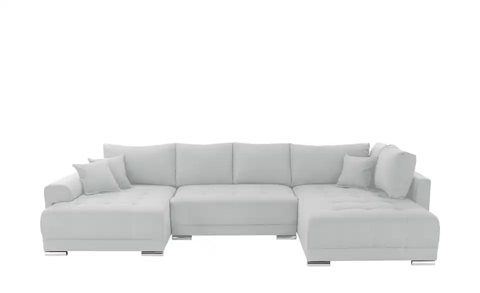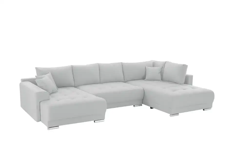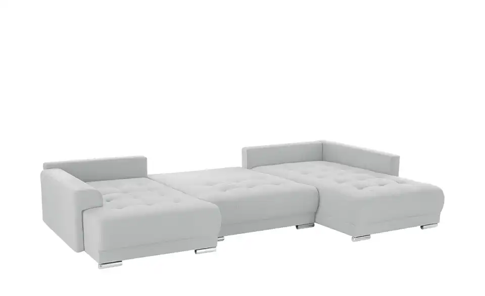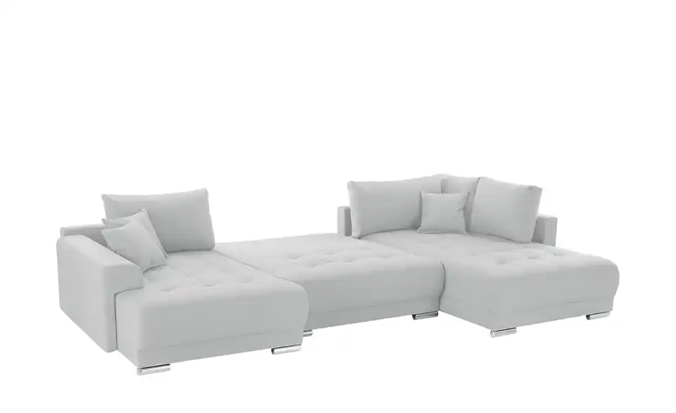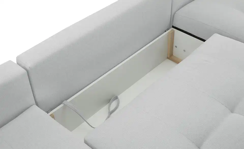 Richtig viel Platz für Freunde und Familie: Diese Wohnlandschaft überzeugt mit zwei einladenden Ottomanen und einer praktischen Schlaffunktion. Sitzen Sie zur Familienfeier bequem zusammen oder genießen Sie in großer Runde einen Filmeabend mit Freunden. Platz gibt es hier genug. Und wenn es doch etwas länger wird, können Sie mit nur wenigen Griffen den Mittelteil umklappen und zu einer Liegefläche umfunktionieren. Dann finden zwei Übernachtungsgäste problemlos Platz. Das dazugehörige Bettzeug lässt sich außerdem im geräumigen Bettkasten unter der Sitzfläche verstauen.Lieferung & Versand