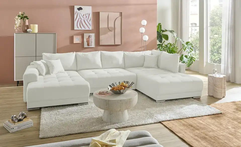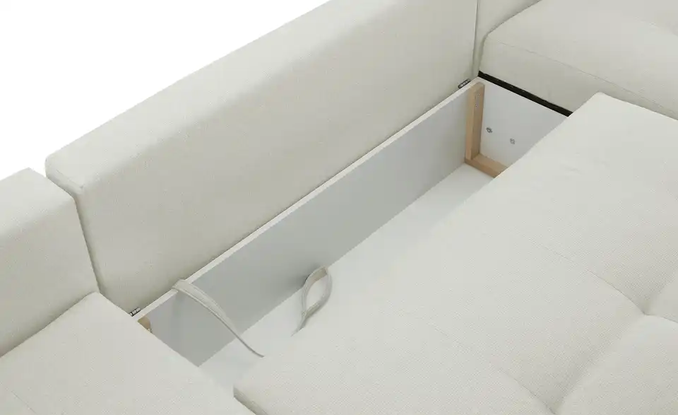 Richtig viel Platz für Freunde und Familie: Diese Wohnlandschaft überzeugt mit zwei einladenden Ottomanen und einer praktischen Schlaffunktion. Sitzen Sie zur Familienfeier bequem zusammen oder genießen Sie in großer Runde einen Filmeabend mit Freunden. Platz gibt es hier genug. Und wenn es doch etwas länger wird, können Sie mit nur wenigen Griffen den Mittelteil umklappen und zu einer Liegefläche umfunktionieren. Dann finden zwei Übernachtungsgäste problemlos Platz. Das dazugehörige Bettzeug lässt sich außerdem im geräumigen Bettkasten unter der Sitzfläche verstauen.Lieferung & Versand