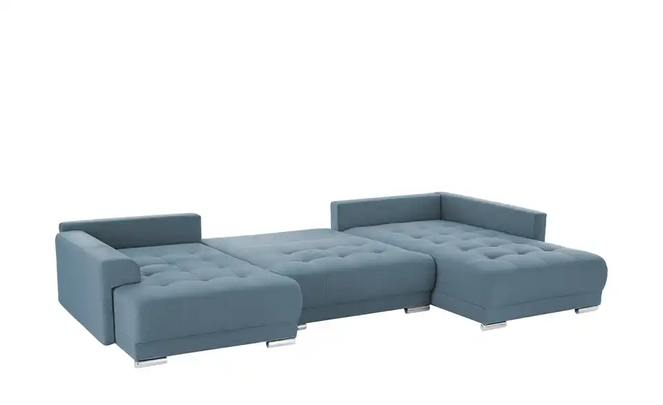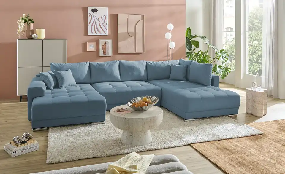 Richtig viel Platz für Freunde und Familie: Diese Wohnlandschaft überzeugt mit zwei einladenden Ottomanen und einer praktischen Schlaffunktion. Sitzen Sie zur Familienfeier bequem zusammen oder genießen Sie in großer Runde einen Filmeabend mit Freunden. Platz gibt es hier genug. Und wenn es doch etwas länger wird, können Sie mit nur wenigen Griffen den Mittelteil umklappen und zu einer Liegefläche umfunktionieren. Dann finden zwei Übernachtungsgäste problemlos Platz. Das dazugehörige Bettzeug lässt sich außerdem im geräumigen Bettkasten unter der Sitzfläche verstauen.Lieferung & Versand