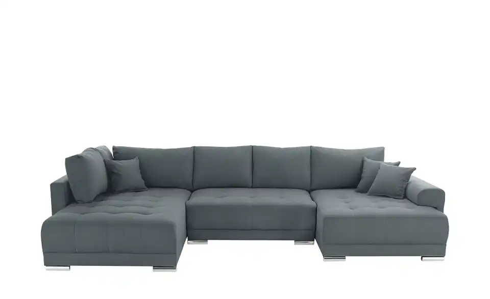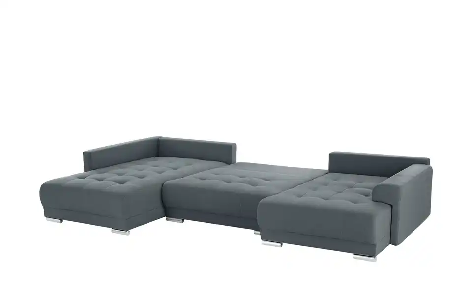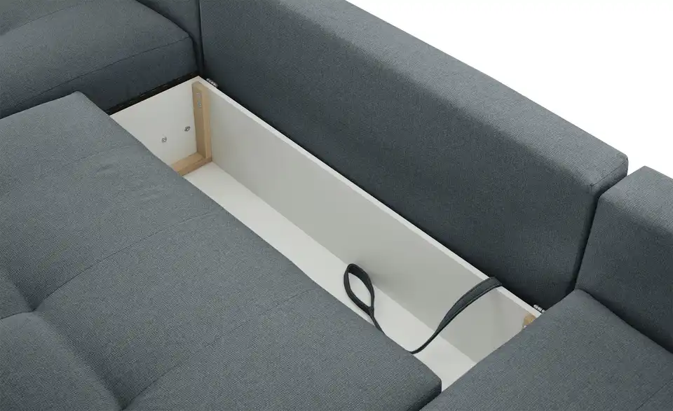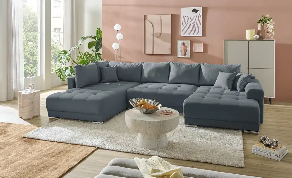 Richtig viel Platz für Freunde und Familie: Diese Wohnlandschaft überzeugt mit zwei einladenden Ottomanen und einer praktischen Schlaffunktion. Sitzen Sie zur Familienfeier bequem zusammen oder genießen Sie in großer Runde einen Filmeabend mit Freunden. Platz gibt es hier genug. Und wenn es doch etwas länger wird, können Sie mit nur wenigen Griffen den Mittelteil umklappen und zu einer Liegefläche umfunktionieren. Dann finden zwei Übernachtungsgäste problemlos Platz. Das dazugehörige Bettzeug lässt sich außerdem im geräumigen Bettkasten unter der Sitzfläche verstauen.Lieferung & Versand