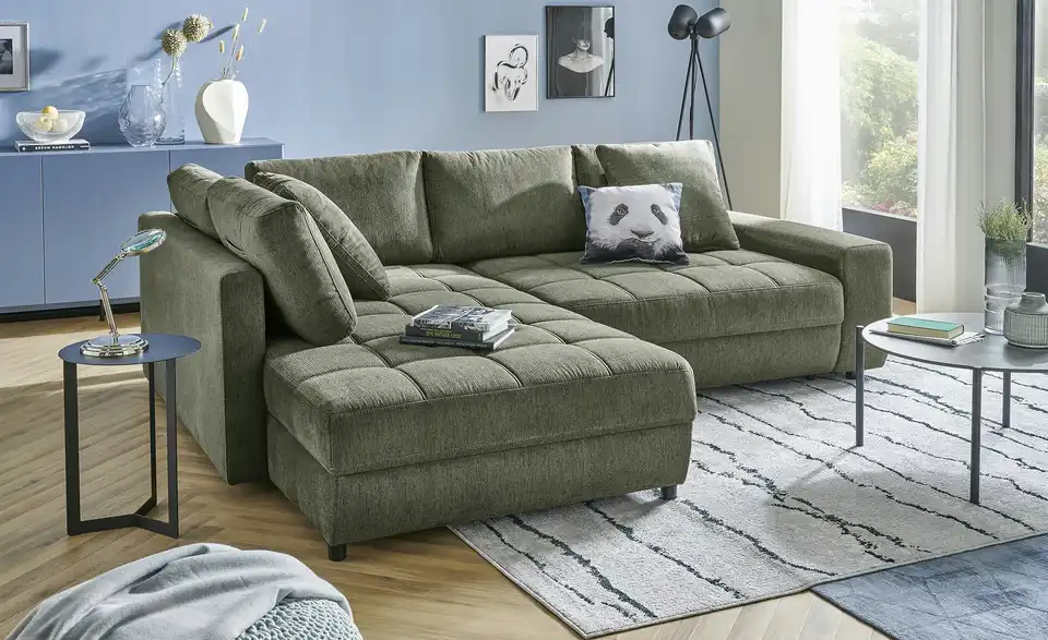 Dieses Ecksofa verbindet modernes Design mit durchdachter Funktionalität. Dank der integrierten Schlaffunktion entsteht im Handumdrehen eine großzügige Liegefläche. Der belüftete Bettkasten bietet praktischen Stauraum, während der mitgelieferte Hygiene-Topper für zusätzlichen Schlafkomfort sorgt. Der pflegeleichte Flachgewebe-Bezug lässt sich meist einfach mit Wasser reinigen und ist ideal für Familien und Haustierbesitzer, da er vor dem Ausfasern durch Tierkrallen schützt und über eine flammhemmende Schutzschicht verfügt. Machen Sie es sich bequem und genießen Sie entspannte Stunden auf dem Ecksofa Arissa de Luxe.Lieferung & Versand