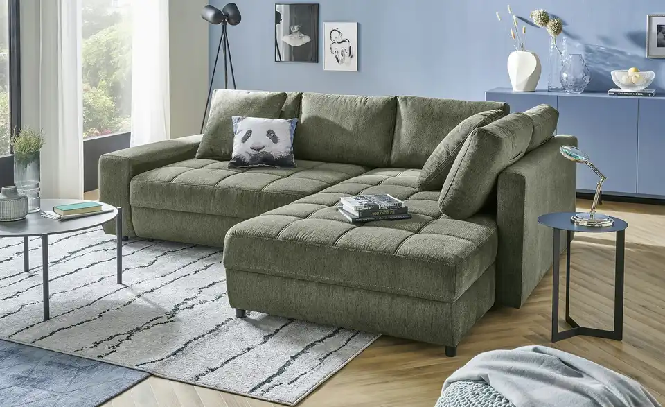 Dieses Ecksofa verbindet modernes Design mit durchdachter Funktionalität. Dank der integrierten Schlaffunktion entsteht im Handumdrehen eine großzügige Liegefläche. Der belüftete Bettkasten bietet praktischen Stauraum, während der mitgelieferte Hygiene-Topper für zusätzlichen Schlafkomfort sorgt. Der pflegeleichte Flachgewebe-Bezug lässt sich meist einfach mit Wasser reinigen und ist ideal für Familien und Haustierbesitzer, da er vor dem Ausfasern durch Tierkrallen schützt und über eine flammhemmende Schutzschicht verfügt. Machen Sie es sich bequem und genießen Sie entspannte Stunden auf dem Ecksofa Arissa de Luxe.Lieferung & Versand