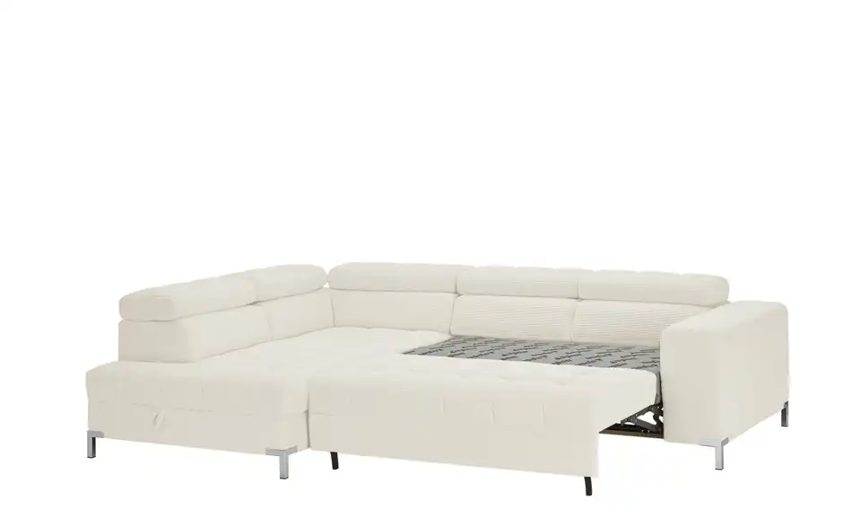 Dieses Ecksofa ist die perfekte Ergänzung für Deine Innenausstattung. Die Couch lässt, was den Komfort angeht, mit der Kopfteilverstellung keine Wünsche offen, ist mit einem echt bespannten Rücken ausgestattet, sodass sie auch mitten im Raum aufgestellt werden kann, und ist mit einem Federkern sowie einer bequemen Polsterung aus Schaumstoff für das maximale Wohlfühlerlebnis versehen. Die Basis des Sitzmöbels bildet ein Gestell, welches aus Metall besteht. Das Sofa verfügt über einen integrierten Bettkasten, lädt mit der stattlichen Sitztiefe von 62 cm zum Verweilen ein und nimmt insgesamt 284 x 97 x 200 cm ein. Dieses Polstermöbel überzeugt als komfortable und ästhetische Ergänzung für Dein Zuhause.Lieferung & Versand