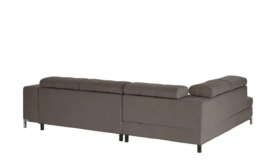 Dieses Ecksofa ist die perfekte Ergänzung für Deine Innenausstattung. Die Couch lässt, was den Komfort angeht, mit der Kopfteilverstellung keine Wünsche offen, ist mit einem echt bespannten Rücken ausgestattet, sodass sie auch mitten im Raum aufgestellt werden kann, und ist mit einem Federkern sowie einer bequemen Polsterung aus Schaumstoff für das maximale Wohlfühlerlebnis versehen. Die Basis des Sitzmöbels bildet ein Gestell, welches aus Metall besteht. Das Sofa verfügt über einen integrierten Bettkasten, lädt mit der stattlichen Sitztiefe von 62 cm zum Verweilen ein und nimmt insgesamt 284 x 97 x 200 cm ein. Dieses Polstermöbel überzeugt als komfortable und ästhetische Ergänzung für Dein Zuhause.Lieferung & Versand