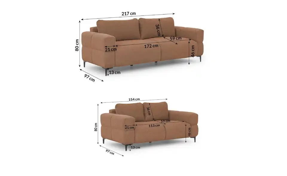 - Mehr zu MaßenSitzbreite - 3-Sitzer 172 cm; 2-Sitzer: 113 cm