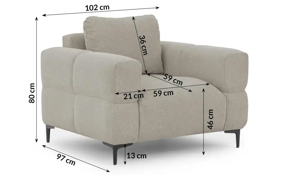 - Breite Armlehne21 cm