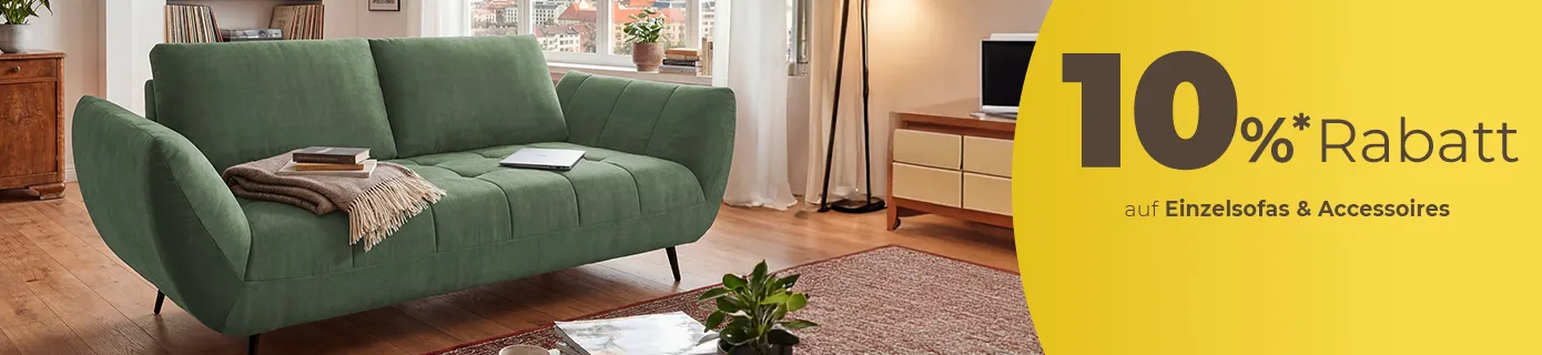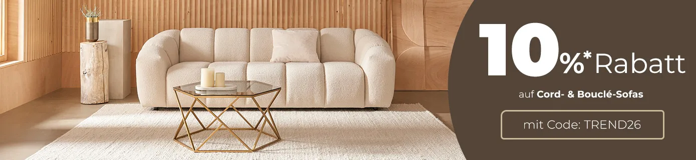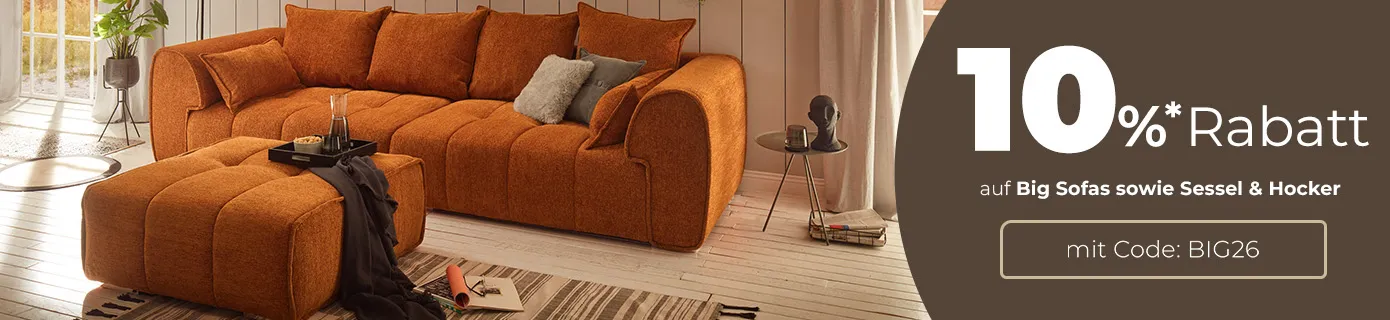 Registriere Dich zum Newsletter und erhalte einen 5% Sofa.de-Gutschein! Als Mitglied erhältst Du außerdem exklusive Tipps, Trends und News zu neuen Styles. Wir halten Dich auf dem Laufenden und informieren Dich selbstverständlich über neue Rabattaktionen.